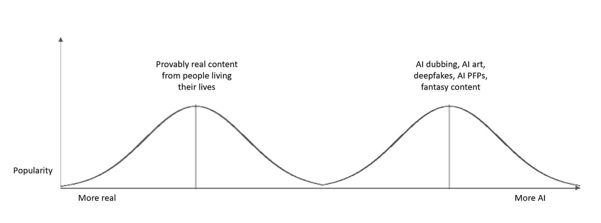 So once AI-generated content is high-quality and indistinguishable from reality, audiences will want to show what is really real, and creators will want to show it.