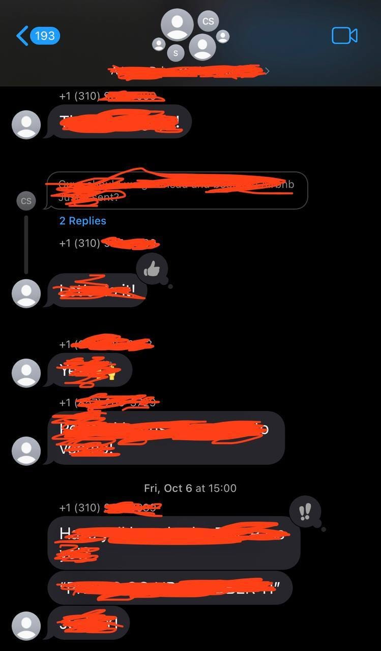 Look closely and you will see that I have absolutely no idea who is saying what. Unless you have somebody’s number saved (which for most large threads you won’t), you have nothing to distinguish senders’ from each other except the long string of digits that happens to be their phone number. At best you just know which state they first bought a cell phone! iMessage doesn’t share names without numbers saved, presumably for user privacy reasons, which Apple needs to uphold as a non-optional operating system.